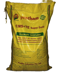 CMS+TE Super Gold (Gypsum Granules) is a Gypsum based granular Fertilizer. It is highly enriched with secondary nutrients like Calcium, Magnesium & Sulphur,Primary Nutrients and other micronutrients in traces.